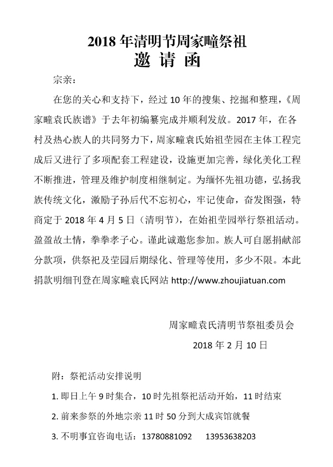 2018年清明节将举行周家疃祭祖活动